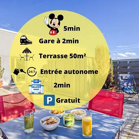 Апартаменти La Terrasse Disney/Gare/Centre A 3Min Parking Free Монтеврен з терасою розташовані на відстані 16-хвилинної прогулянки від бутик-містечка Ла Валле Віладж. В апартаментах також надається Wi-Fi і безкоштовна приватна парковка.